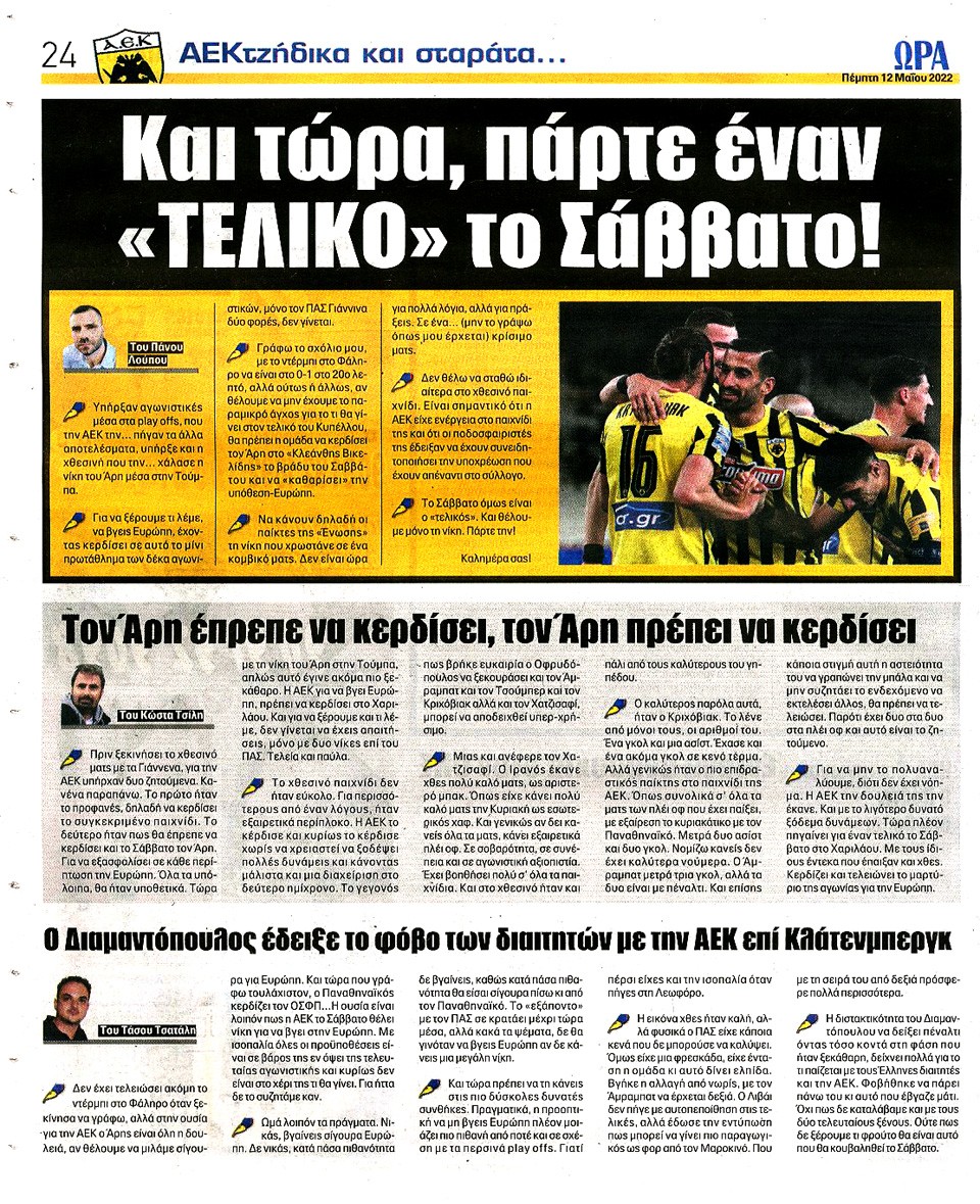 ΑΘΛΗΤΙΚΗ ΩΡΑ ΤΩΝ ΣΠΟΡ - 12 Μαΐου 2022