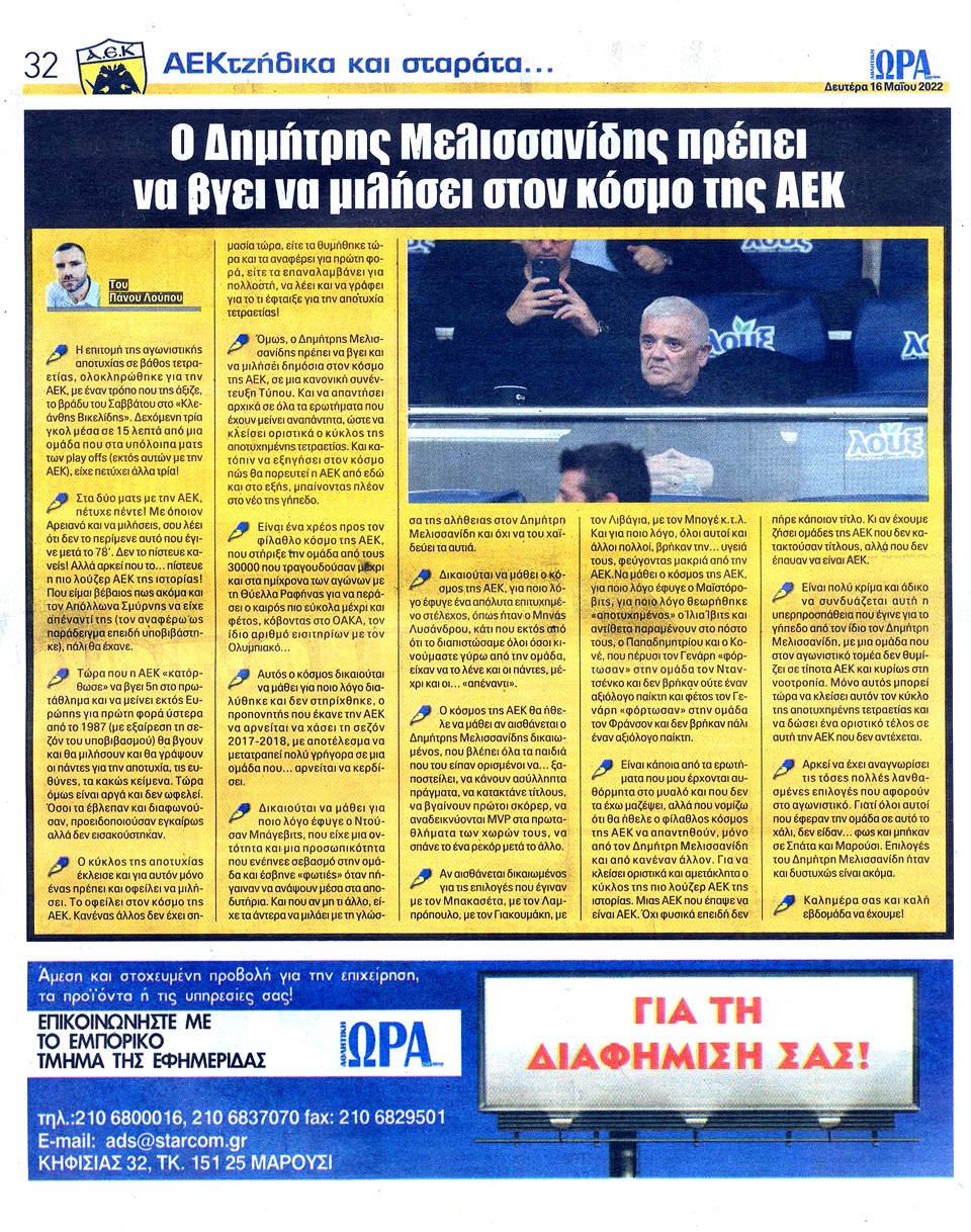 ΑΘΛΗΤΙΚΗ ΩΡΑ ΤΩΝ ΣΠΟΡ - 16 Μαΐου 2022