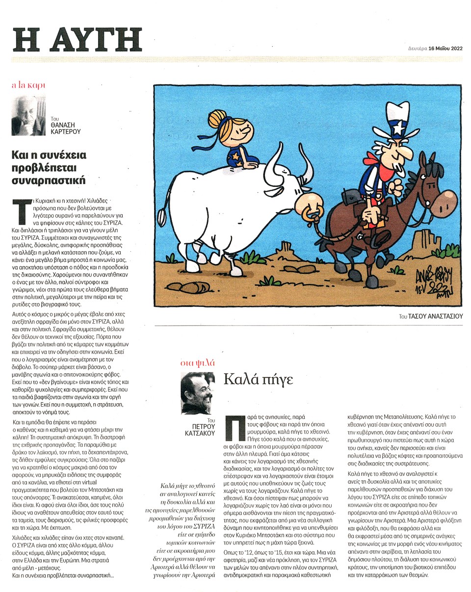 Η ΑΥΓΗ - 16 Μαΐου 2022