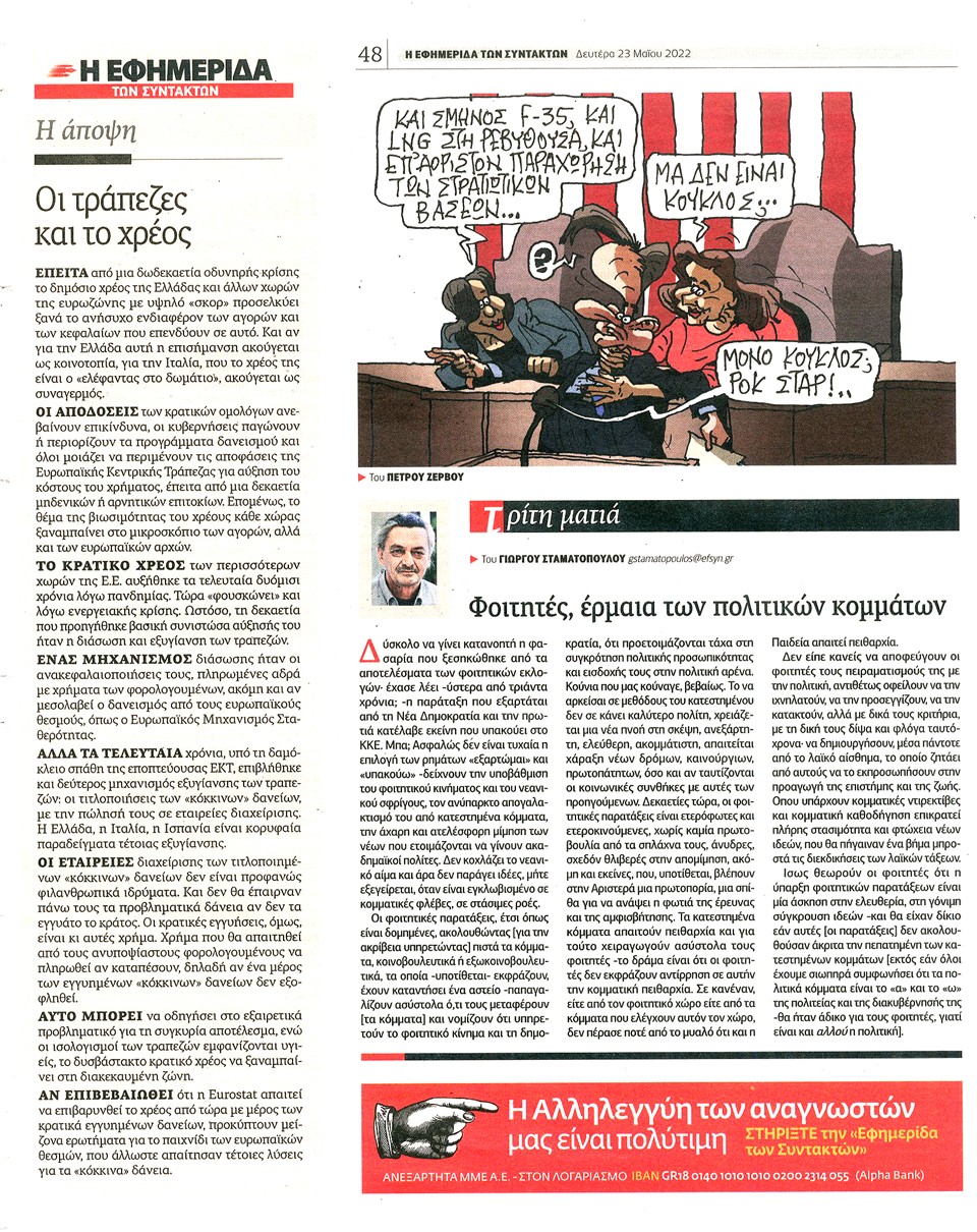 Η ΕΦΗΜΕΡΙΔΑ ΤΩΝ ΣΥΝΤΑΚΤΩΝ - 23 Μαΐου 2022