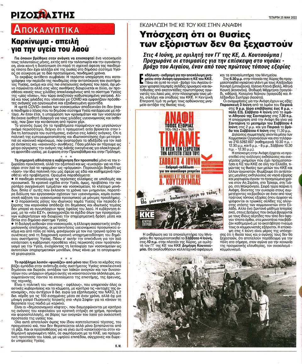 ΡΙΖΟΣΠΑΣΤΗΣ - 25 Μαΐου 2022
