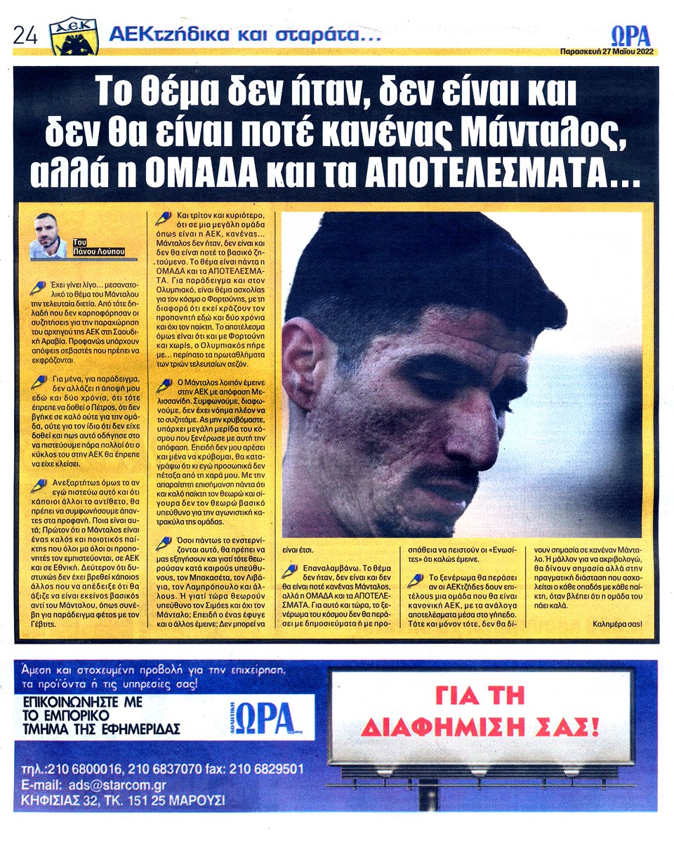ΑΘΛΗΤΙΚΗ ΩΡΑ ΤΩΝ ΣΠΟΡ - 27 Μαΐου 2022