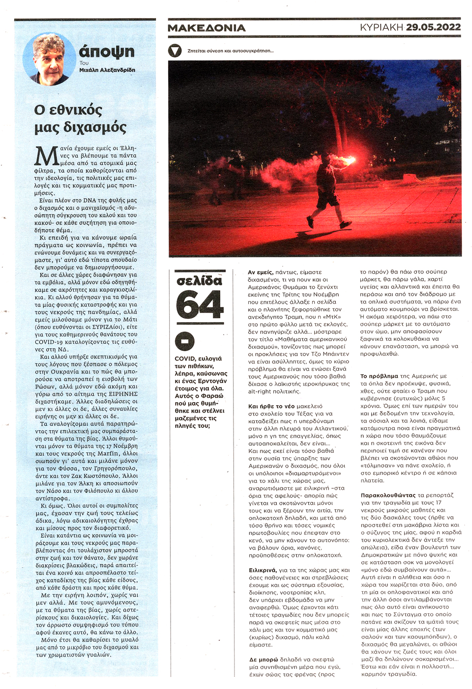 ΜΑΚΕΔΟΝΙΑ ΤΗΣ ΚΥΡΙΑΚΗΣ - 29 Μαΐου 2022
