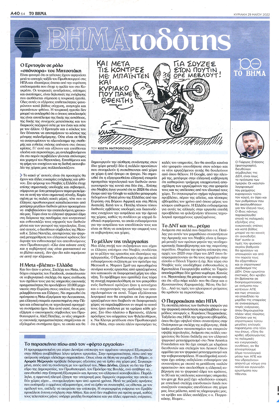ΤΟ ΒΗΜΑ ΤΗΣ ΚΥΡΙΑΚΗΣ - 29 Μαΐου 2022