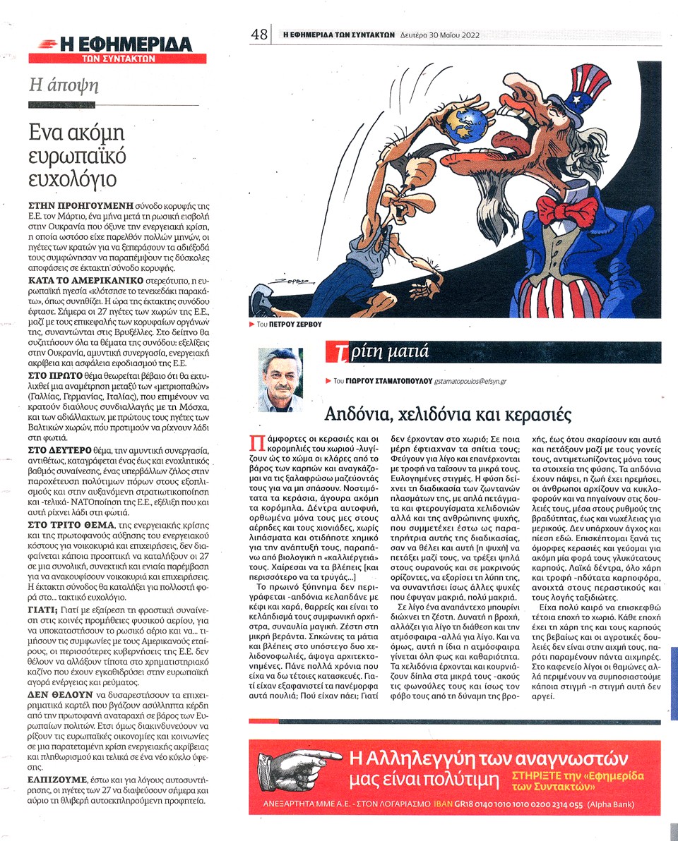 Η ΕΦΗΜΕΡΙΔΑ ΤΩΝ ΣΥΝΤΑΚΤΩΝ - 30 Μαΐου 2022