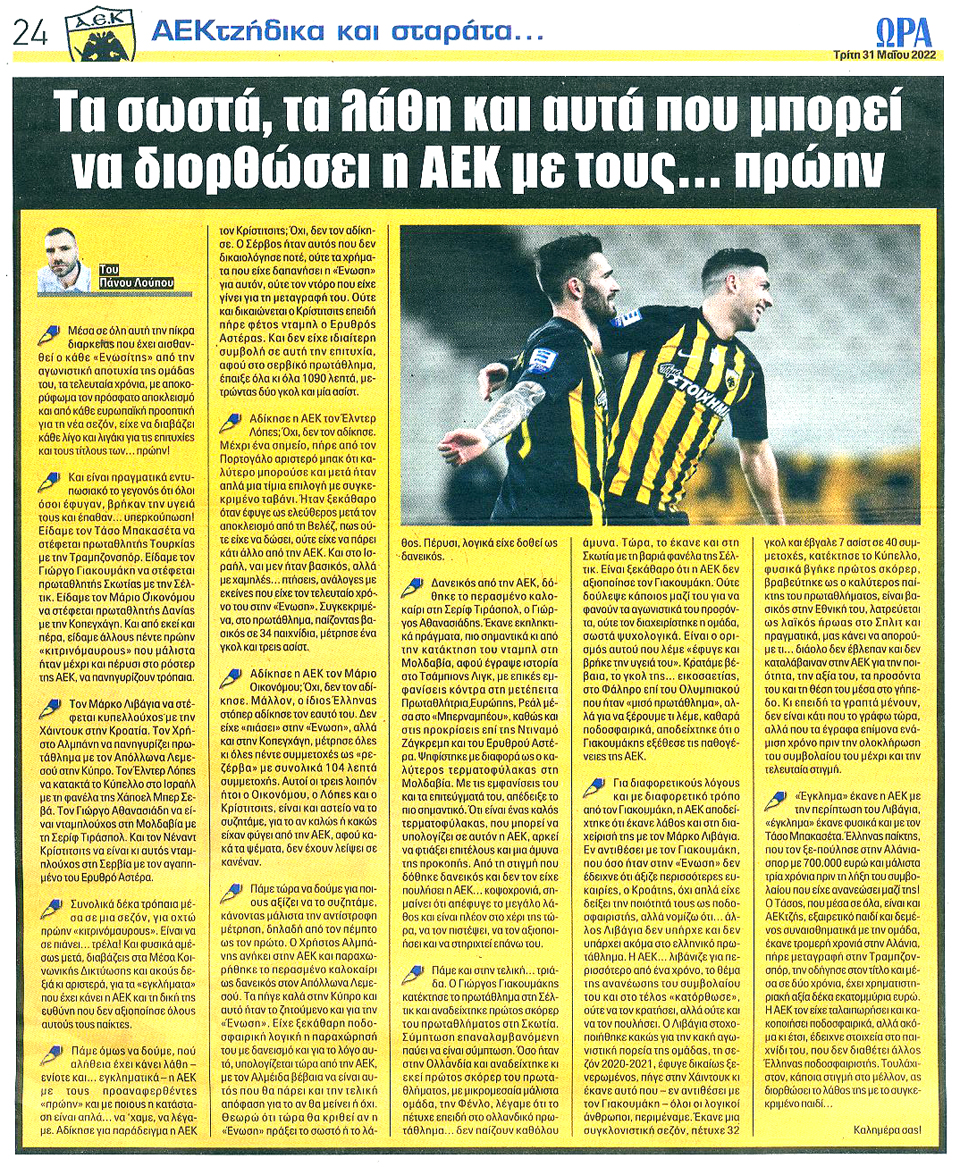 ΑΘΛΗΤΙΚΗ ΩΡΑ ΤΩΝ ΣΠΟΡ - 31 Μαΐου 2022