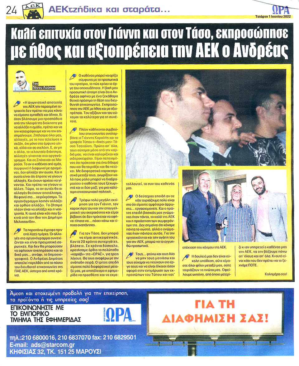 ΑΘΛΗΤΙΚΗ ΩΡΑ ΤΩΝ ΣΠΟΡ - 1 Ιουνίου 2022