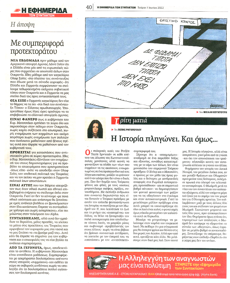 Η ΕΦΗΜΕΡΙΔΑ ΤΩΝ ΣΥΝΤΑΚΤΩΝ - 1 Ιουνίου 2022