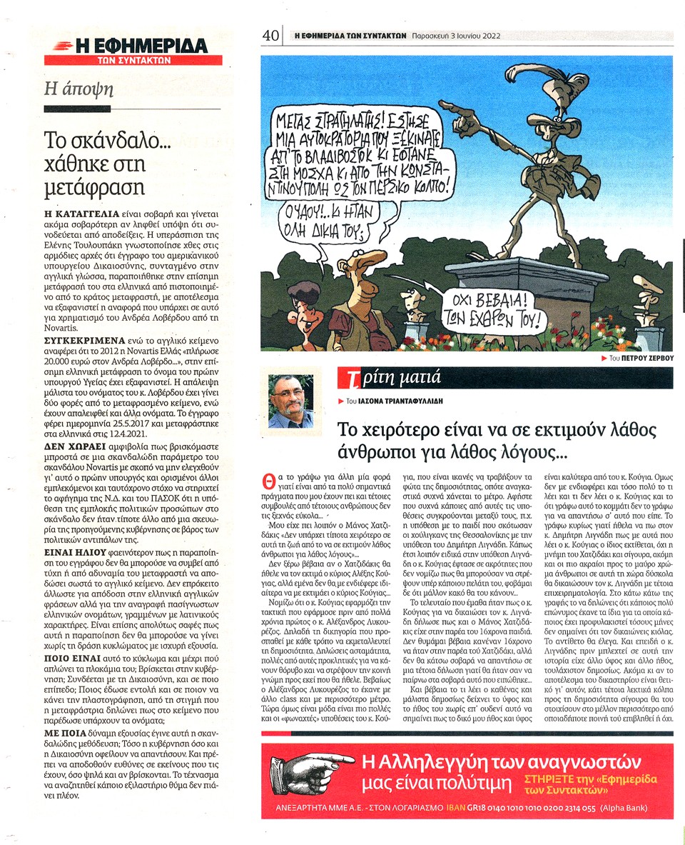 Η ΕΦΗΜΕΡΙΔΑ ΤΩΝ ΣΥΝΤΑΚΤΩΝ - 3 Ιουνίου 2022
