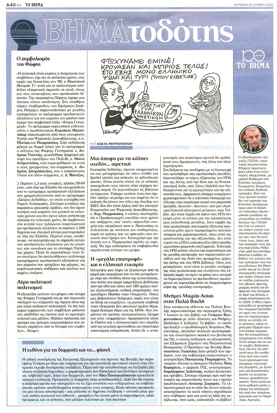 ΤΟ ΒΗΜΑ ΤΗΣ ΚΥΡΙΑΚΗΣ - 11 Ιουνίου 2022