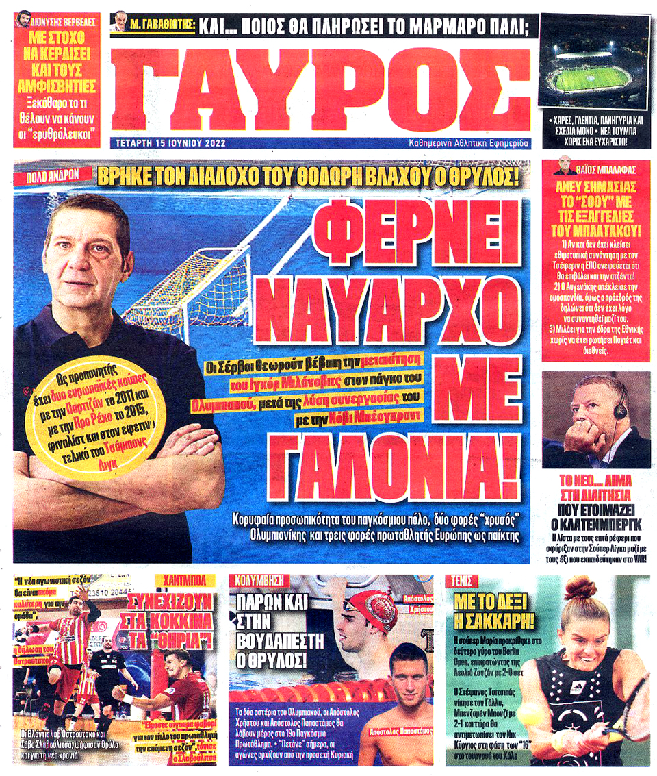 ΠΡΩΤΑΘΛΗΤΗΣ - 15 Ιουνίου 2022