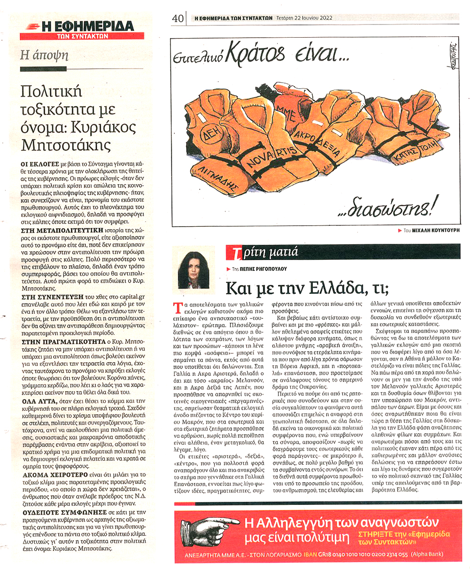 Η ΕΦΗΜΕΡΙΔΑ ΤΩΝ ΣΥΝΤΑΚΤΩΝ - 22 Ιουνίου 2022