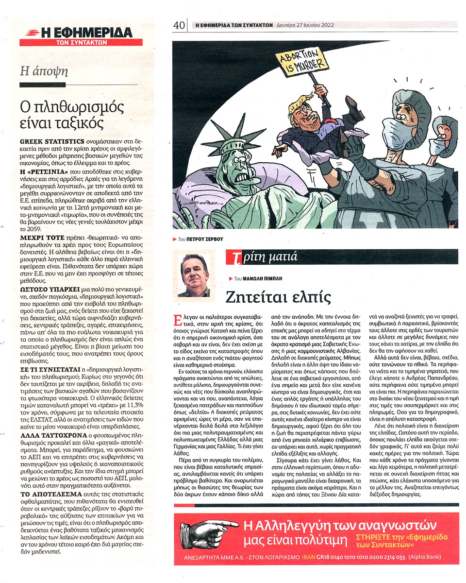 Η ΕΦΗΜΕΡΙΔΑ ΤΩΝ ΣΥΝΤΑΚΤΩΝ - 27 Ιουνίου 2022