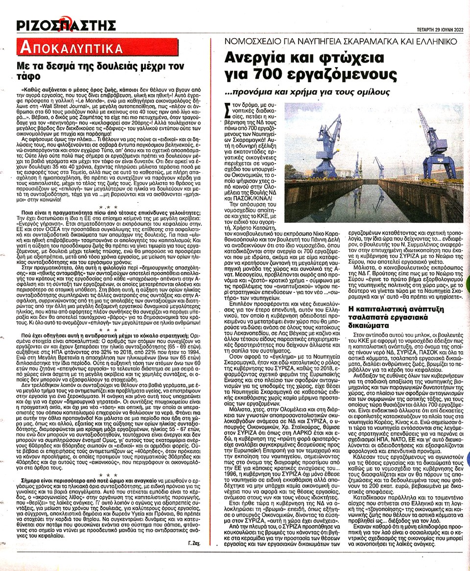 ΡΙΖΟΣΠΑΣΤΗΣ - 29 Ιουνίου 2022
