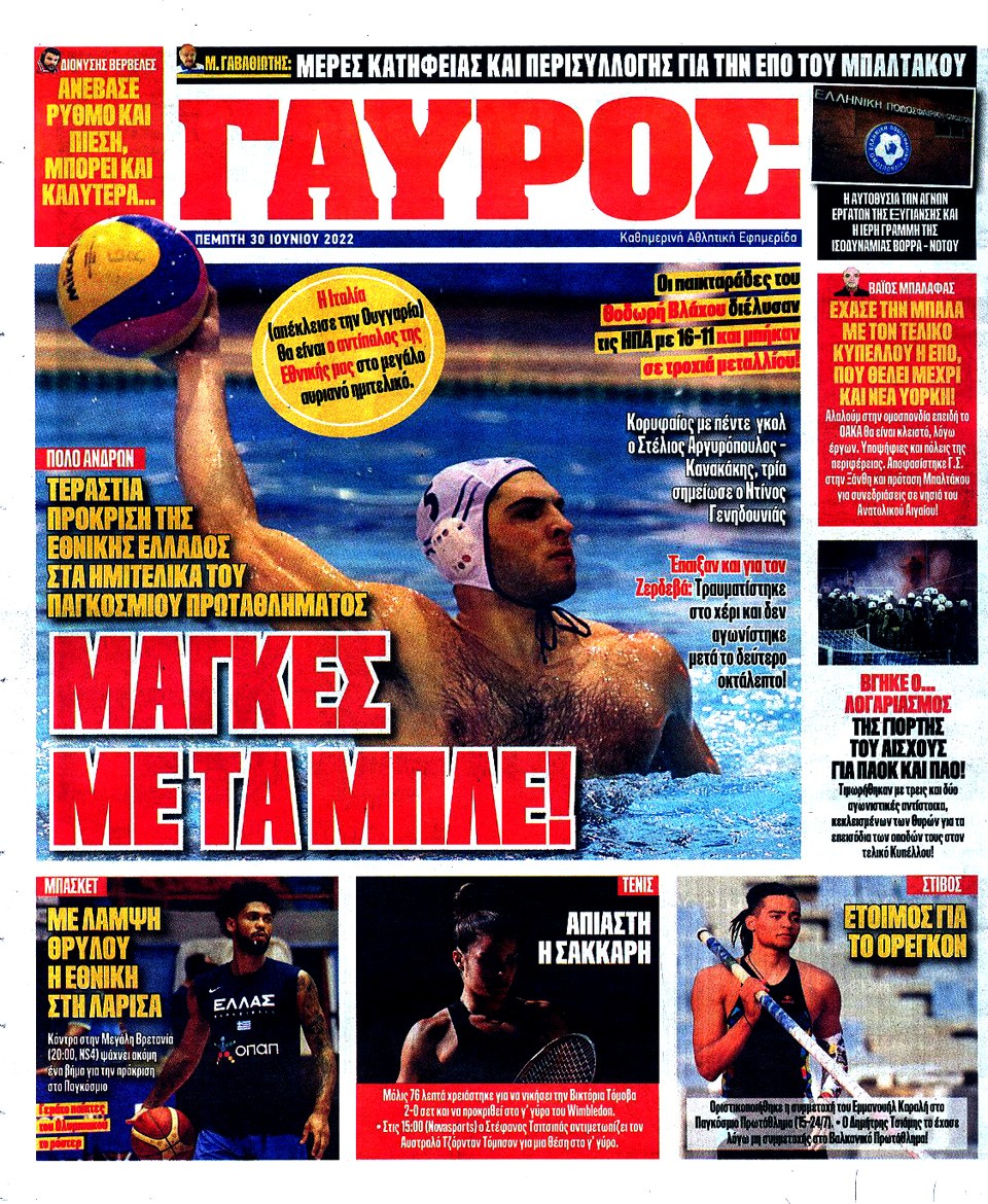 ΠΡΩΤΑΘΛΗΤΗΣ - 30 Ιουνίου 2022