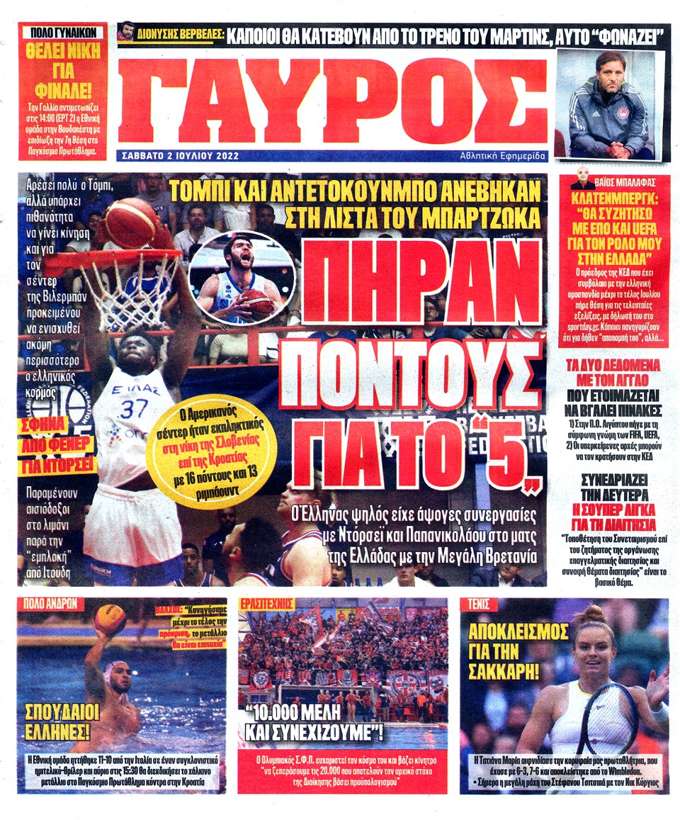 ΠΡΩΤΑΘΛΗΤΗΣ - 2 Ιουλίου 2022