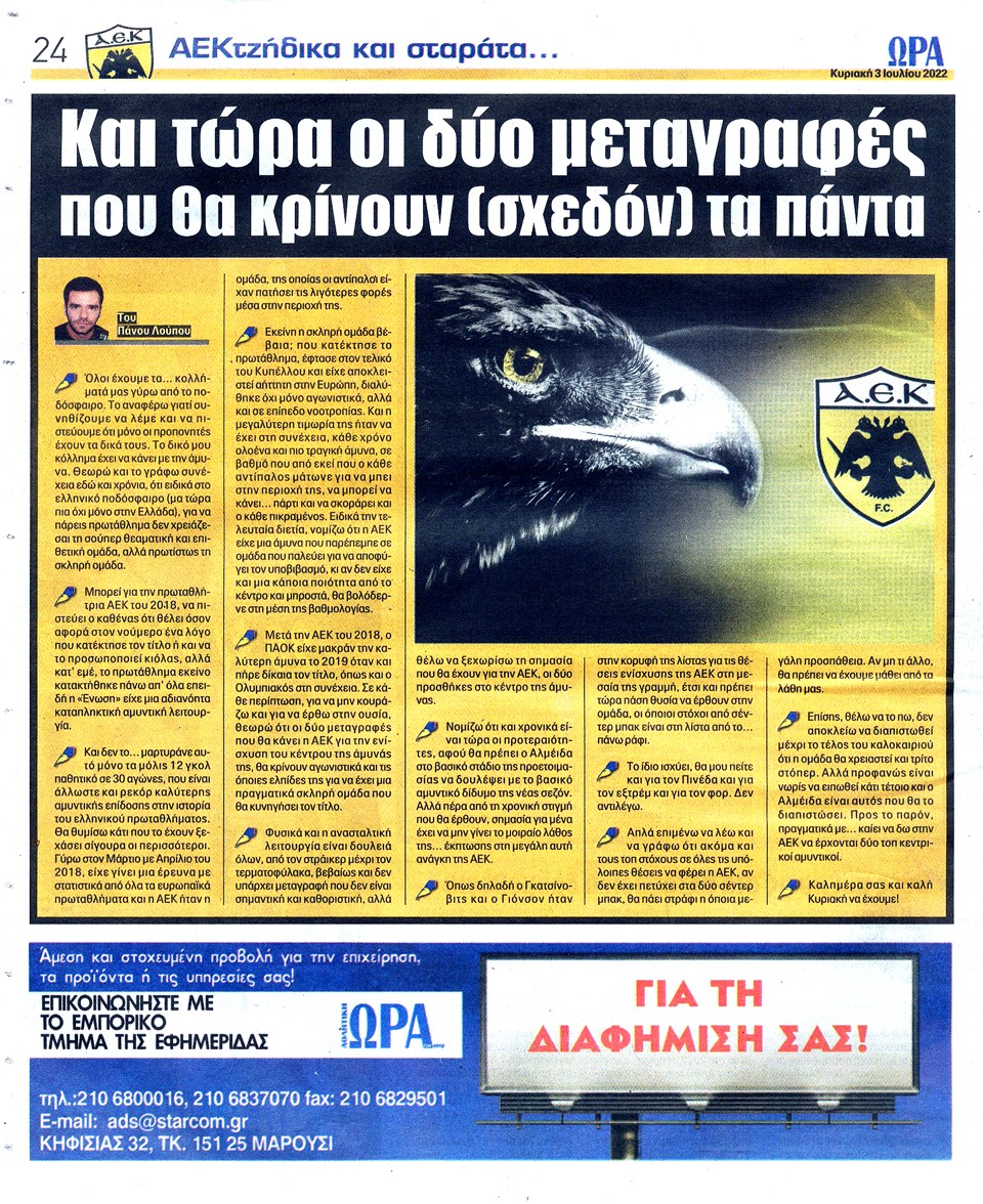 ΑΘΛΗΤΙΚΗ ΩΡΑ ΤΩΝ ΣΠΟΡ - 3 Ιουλίου 2022