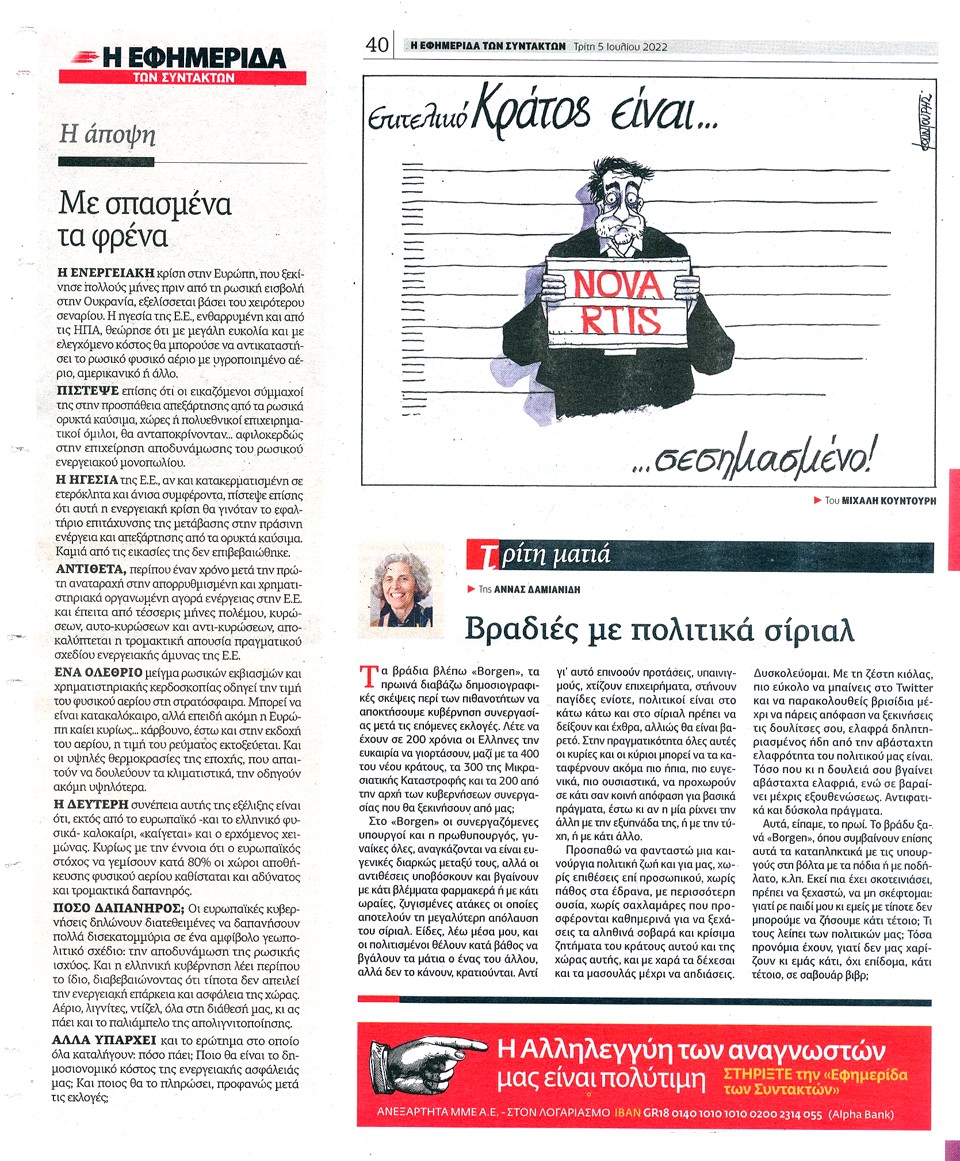 Η ΕΦΗΜΕΡΙΔΑ ΤΩΝ ΣΥΝΤΑΚΤΩΝ - 5 Ιουλίου 2022