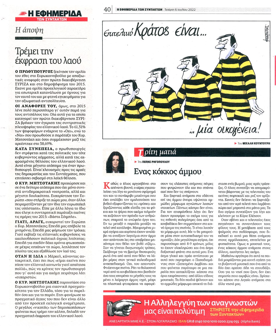 Η ΕΦΗΜΕΡΙΔΑ ΤΩΝ ΣΥΝΤΑΚΤΩΝ - 6 Ιουλίου 2022