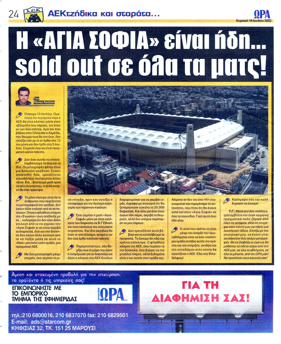ΑΘΛΗΤΙΚΗ ΩΡΑ ΤΩΝ ΣΠΟΡ - 10 Ιουλίου 2022