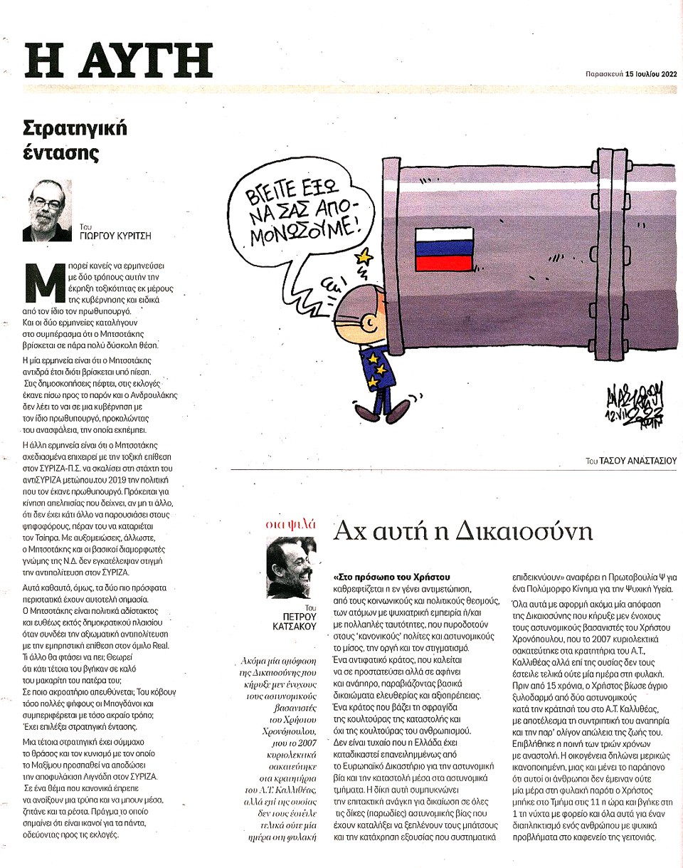 Η ΑΥΓΗ - 15 Ιουλίου 2022