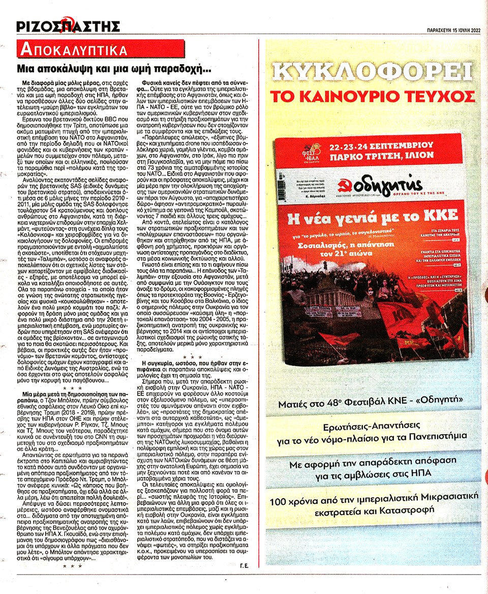 ΡΙΖΟΣΠΑΣΤΗΣ - 15 Ιουλίου 2022