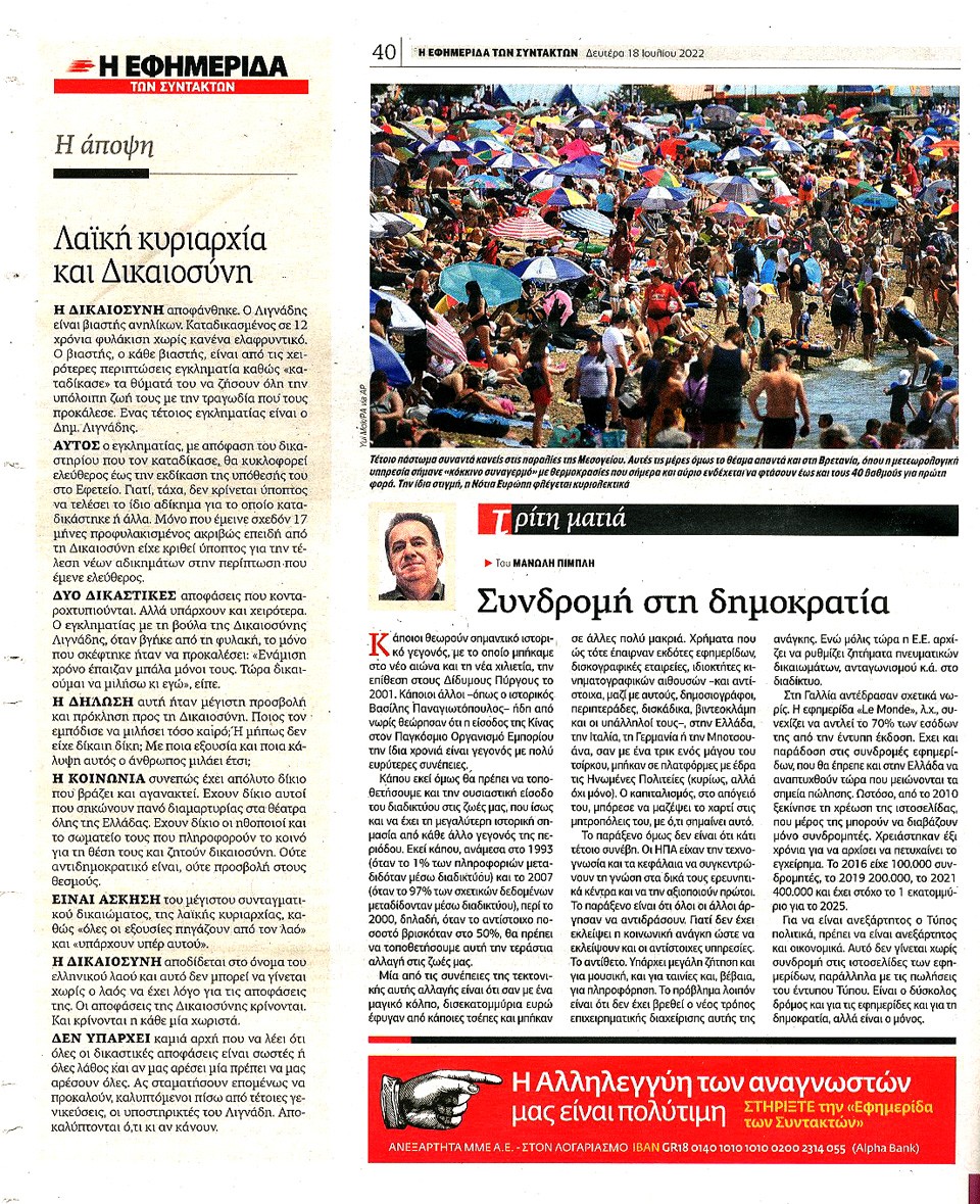 Η ΕΦΗΜΕΡΙΔΑ ΤΩΝ ΣΥΝΤΑΚΤΩΝ - 18 Ιουλίου 2022