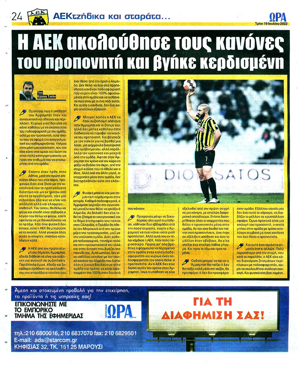 ΑΘΛΗΤΙΚΗ ΩΡΑ ΤΩΝ ΣΠΟΡ - 19 Ιουλίου 2022
