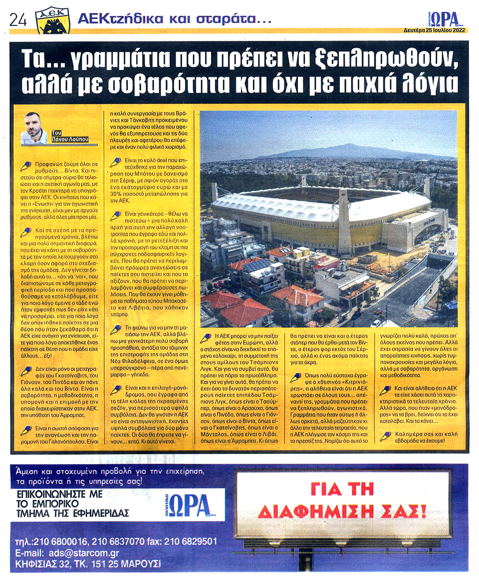 ΑΘΛΗΤΙΚΗ ΩΡΑ ΤΩΝ ΣΠΟΡ - 25 Ιουλίου 2022