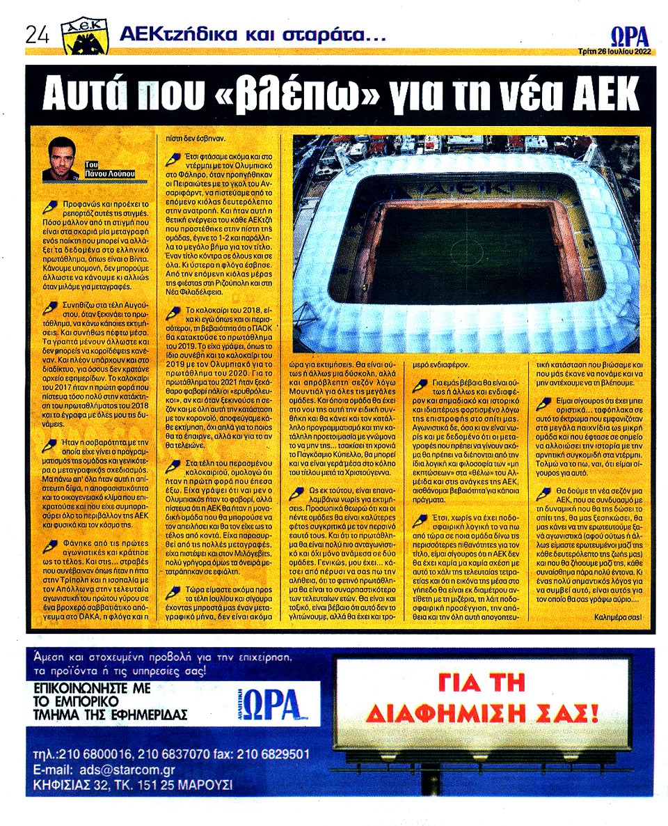 ΑΘΛΗΤΙΚΗ ΩΡΑ ΤΩΝ ΣΠΟΡ - 26 Ιουλίου 2022