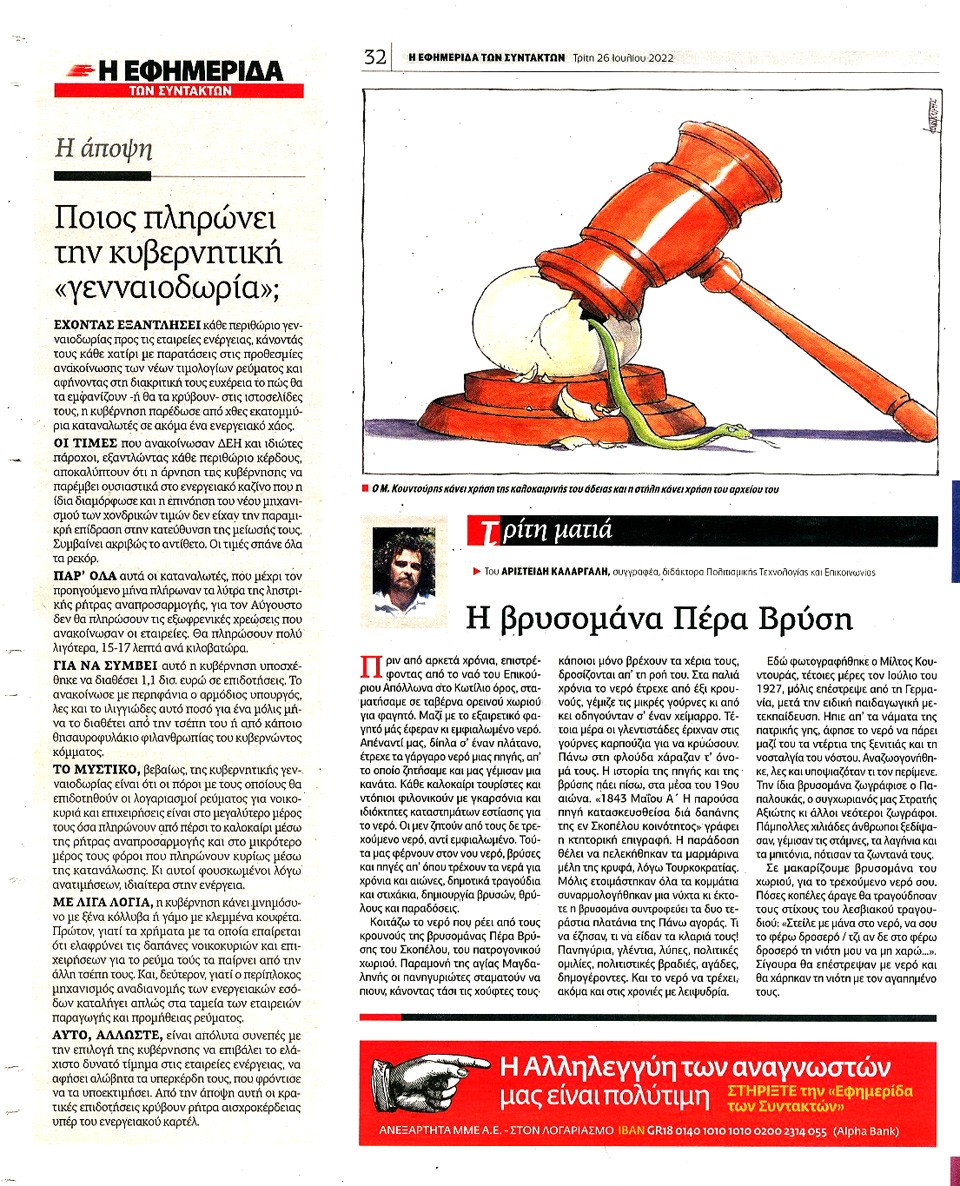 Η ΕΦΗΜΕΡΙΔΑ ΤΩΝ ΣΥΝΤΑΚΤΩΝ - 26 Ιουλίου 2022