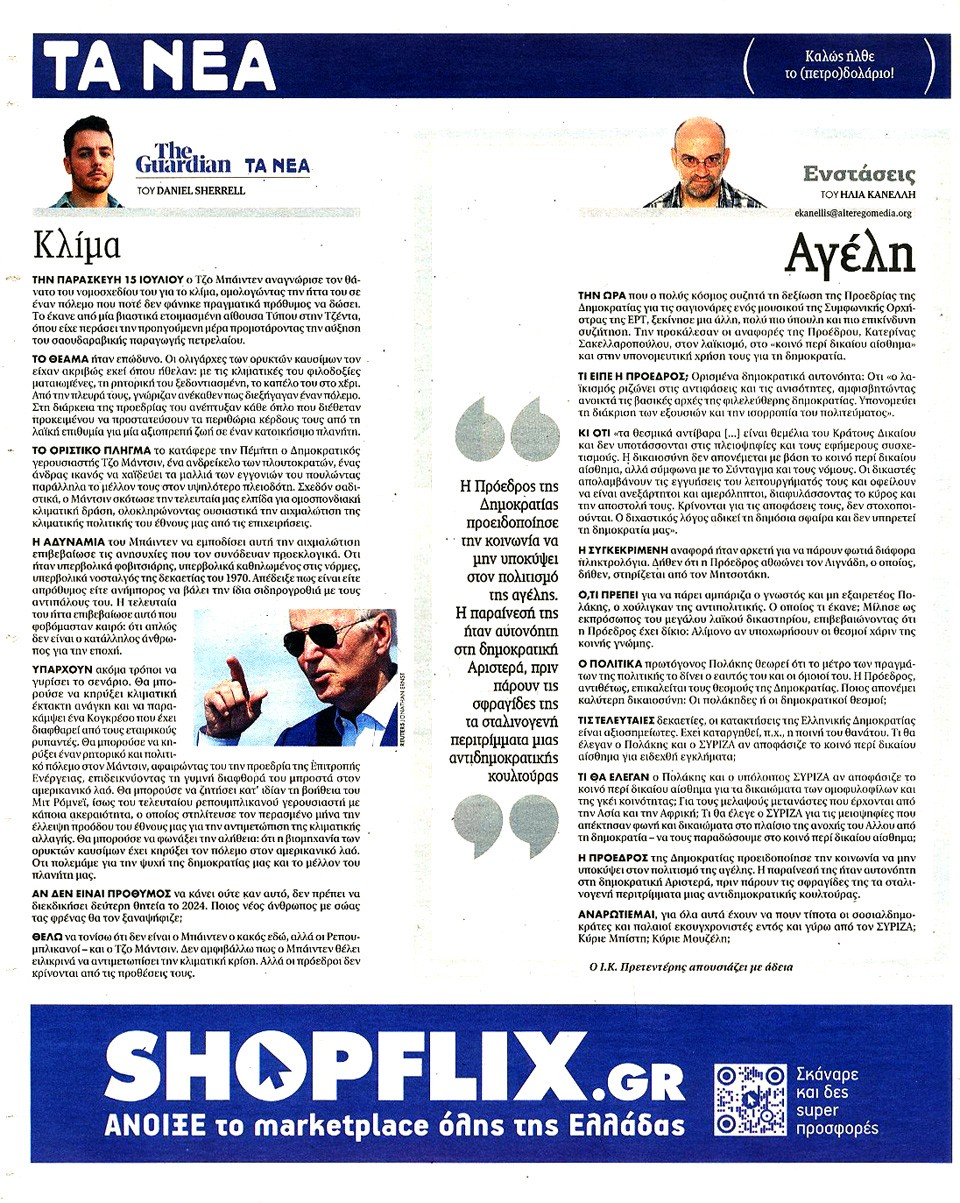 ΤΑ ΝΕΑ - 26 Ιουλίου 2022