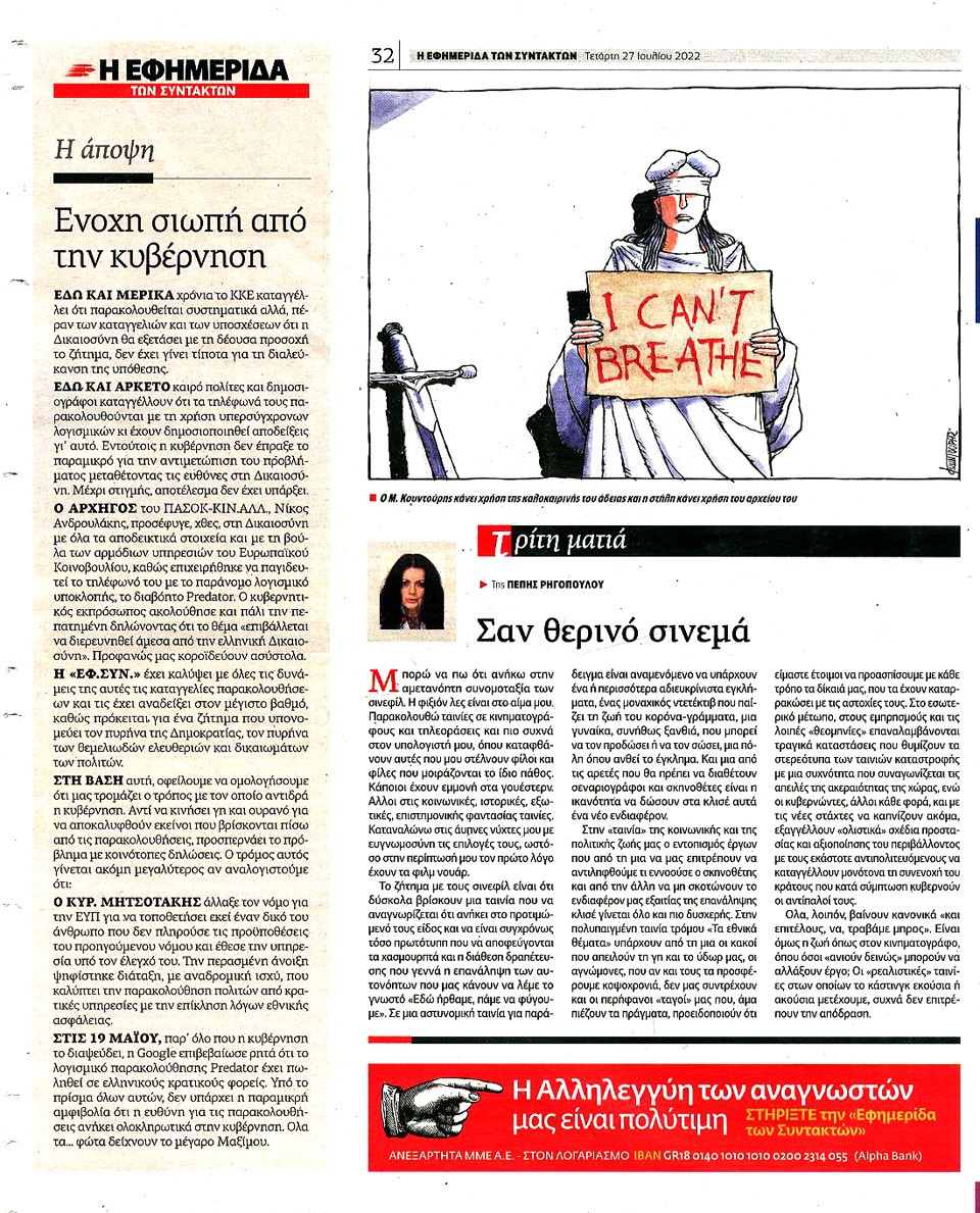 Η ΕΦΗΜΕΡΙΔΑ ΤΩΝ ΣΥΝΤΑΚΤΩΝ - 27 Ιουλίου 2022