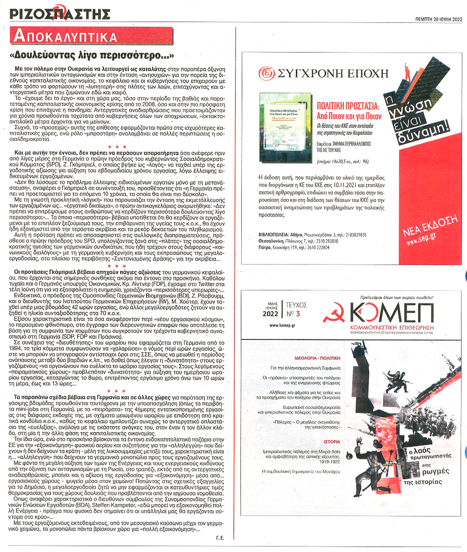 ΡΙΖΟΣΠΑΣΤΗΣ - 28 Ιουλίου 2022