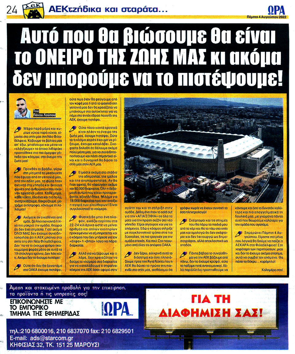ΑΘΛΗΤΙΚΗ ΩΡΑ ΤΩΝ ΣΠΟΡ - 4 Αυγούστου 2022