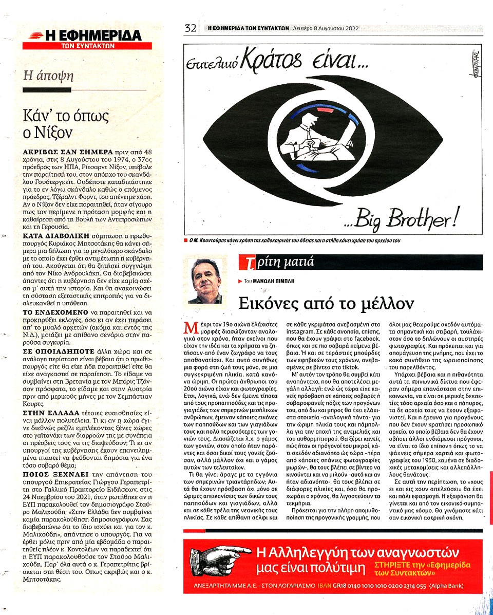 Η ΕΦΗΜΕΡΙΔΑ ΤΩΝ ΣΥΝΤΑΚΤΩΝ - 8 Αυγούστου 2022