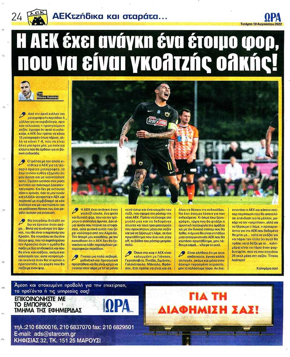 ΑΘΛΗΤΙΚΗ ΩΡΑ ΤΩΝ ΣΠΟΡ - 10 Αυγούστου 2022