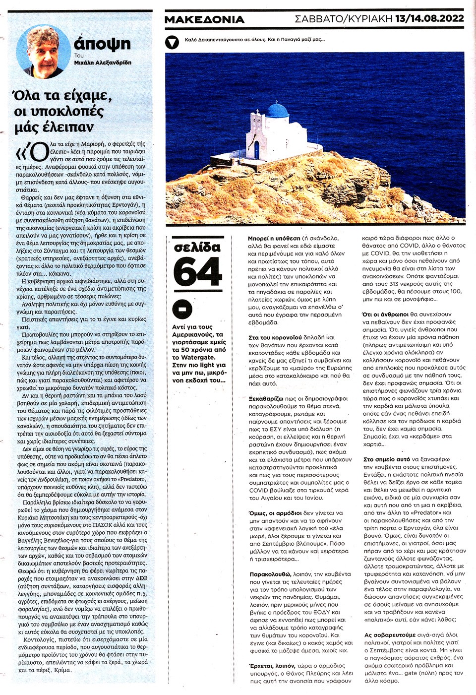 ΜΑΚΕΔΟΝΙΑ ΤΗΣ ΚΥΡΙΑΚΗΣ - 13 Αυγούστου 2022