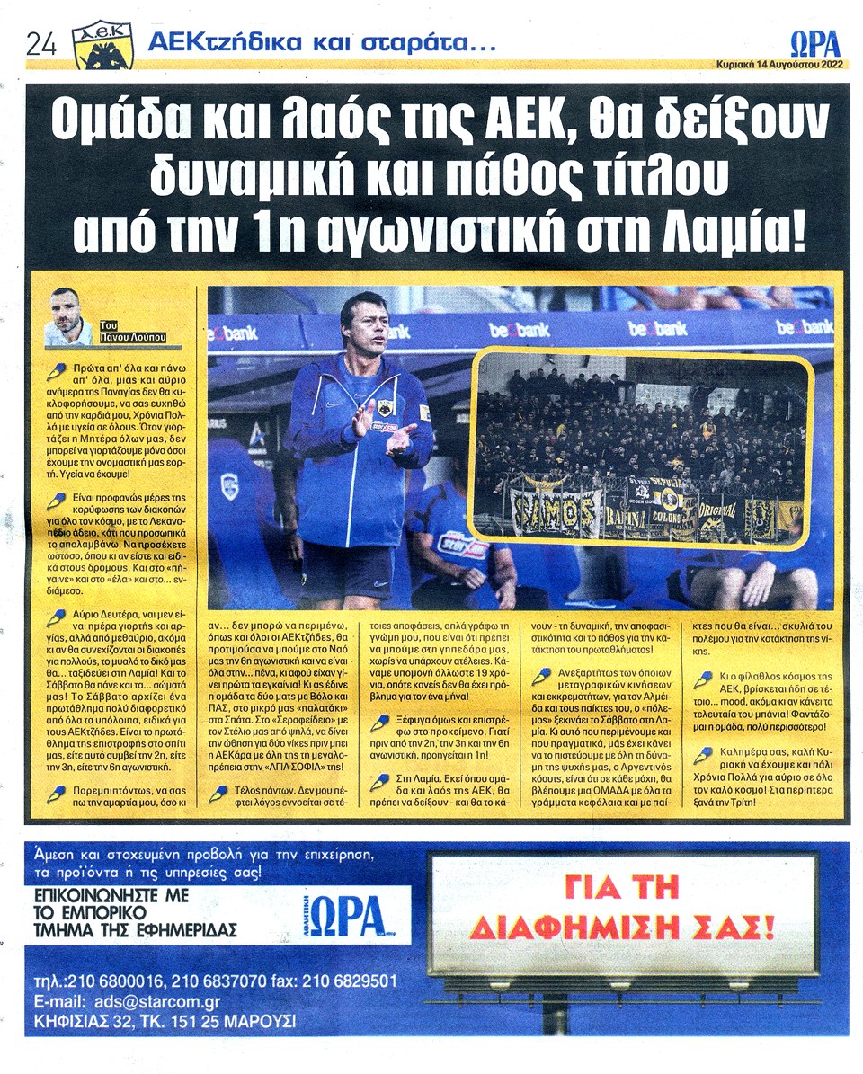 ΑΘΛΗΤΙΚΗ ΩΡΑ ΤΩΝ ΣΠΟΡ - 14 Αυγούστου 2022