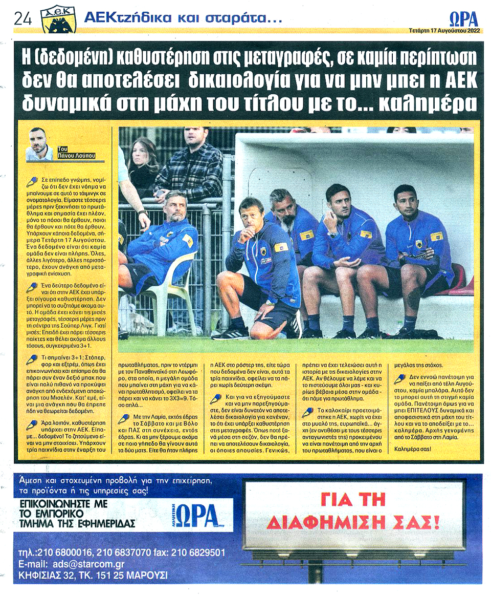 ΑΘΛΗΤΙΚΗ ΩΡΑ ΤΩΝ ΣΠΟΡ - 17 Αυγούστου 2022