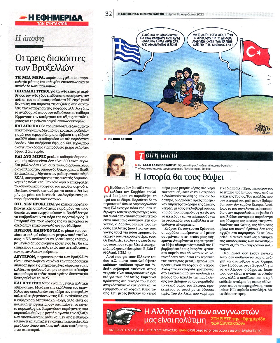 Η ΕΦΗΜΕΡΙΔΑ ΤΩΝ ΣΥΝΤΑΚΤΩΝ - 18 Αυγούστου 2022