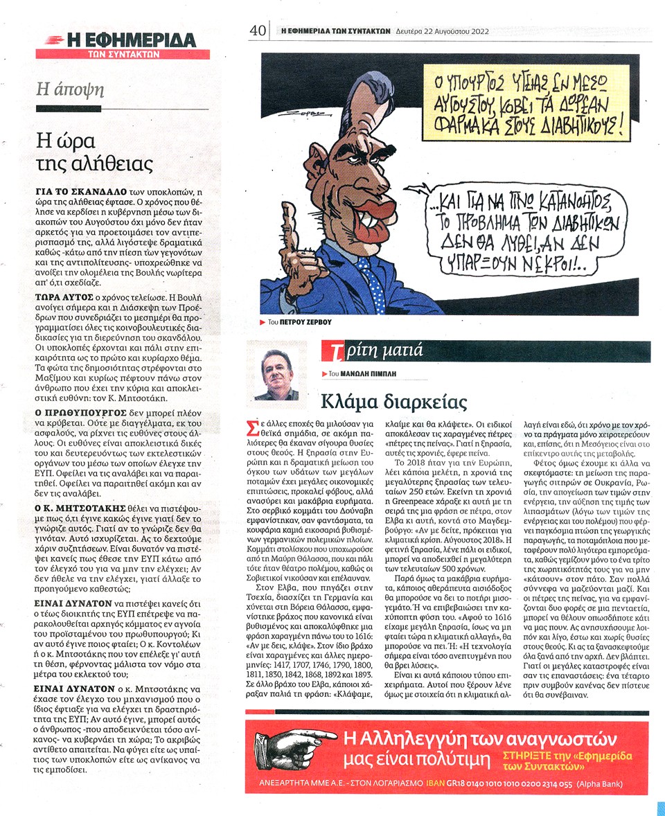 Η ΕΦΗΜΕΡΙΔΑ ΤΩΝ ΣΥΝΤΑΚΤΩΝ - 22 Αυγούστου 2022