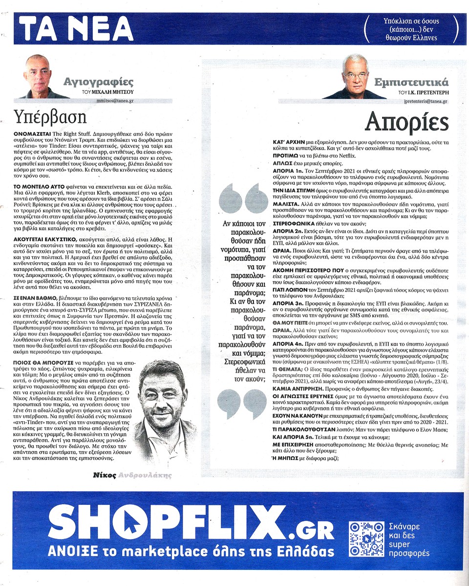ΤΑ ΝΕΑ - 22 Αυγούστου 2022