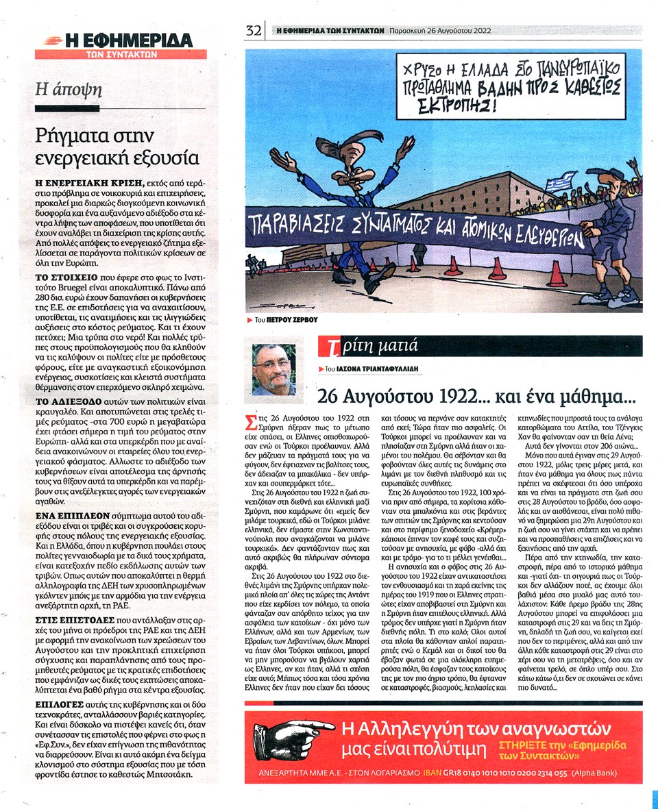Η ΕΦΗΜΕΡΙΔΑ ΤΩΝ ΣΥΝΤΑΚΤΩΝ - 26 Αυγούστου 2022