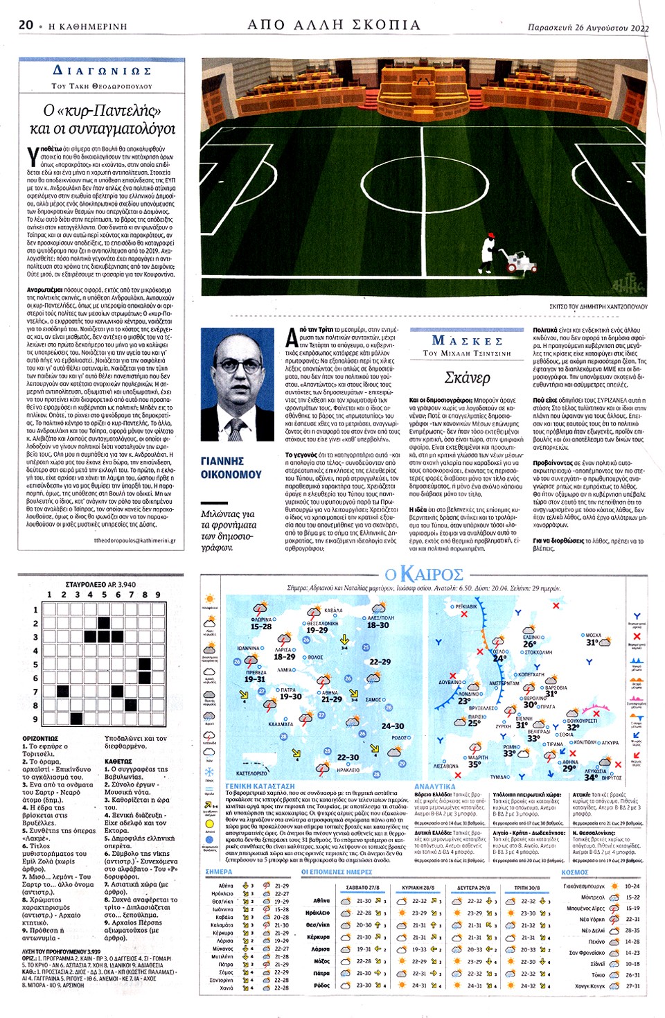 ΚΑΘΗΜΕΡΙΝΗ - 26 Αυγούστου 2022