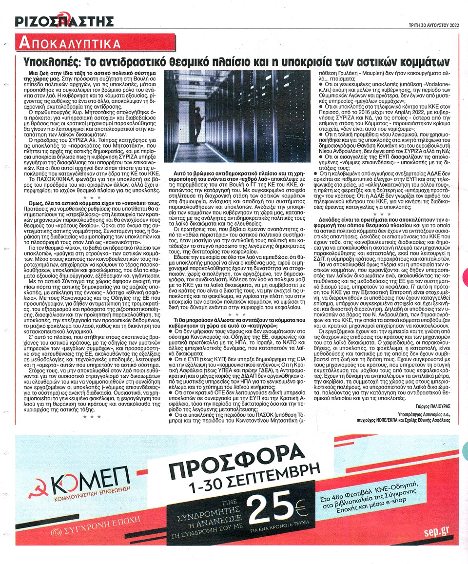 ΡΙΖΟΣΠΑΣΤΗΣ - 30 Αυγούστου 2022