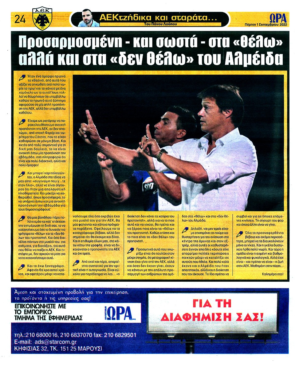 ΑΘΛΗΤΙΚΗ ΩΡΑ ΤΩΝ ΣΠΟΡ - 1 Σεπτεμβρίου 2022
