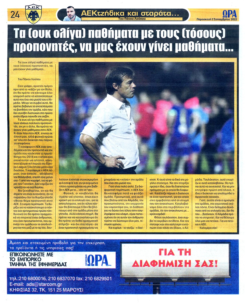 ΑΘΛΗΤΙΚΗ ΩΡΑ ΤΩΝ ΣΠΟΡ - 2 Σεπτεμβρίου 2022