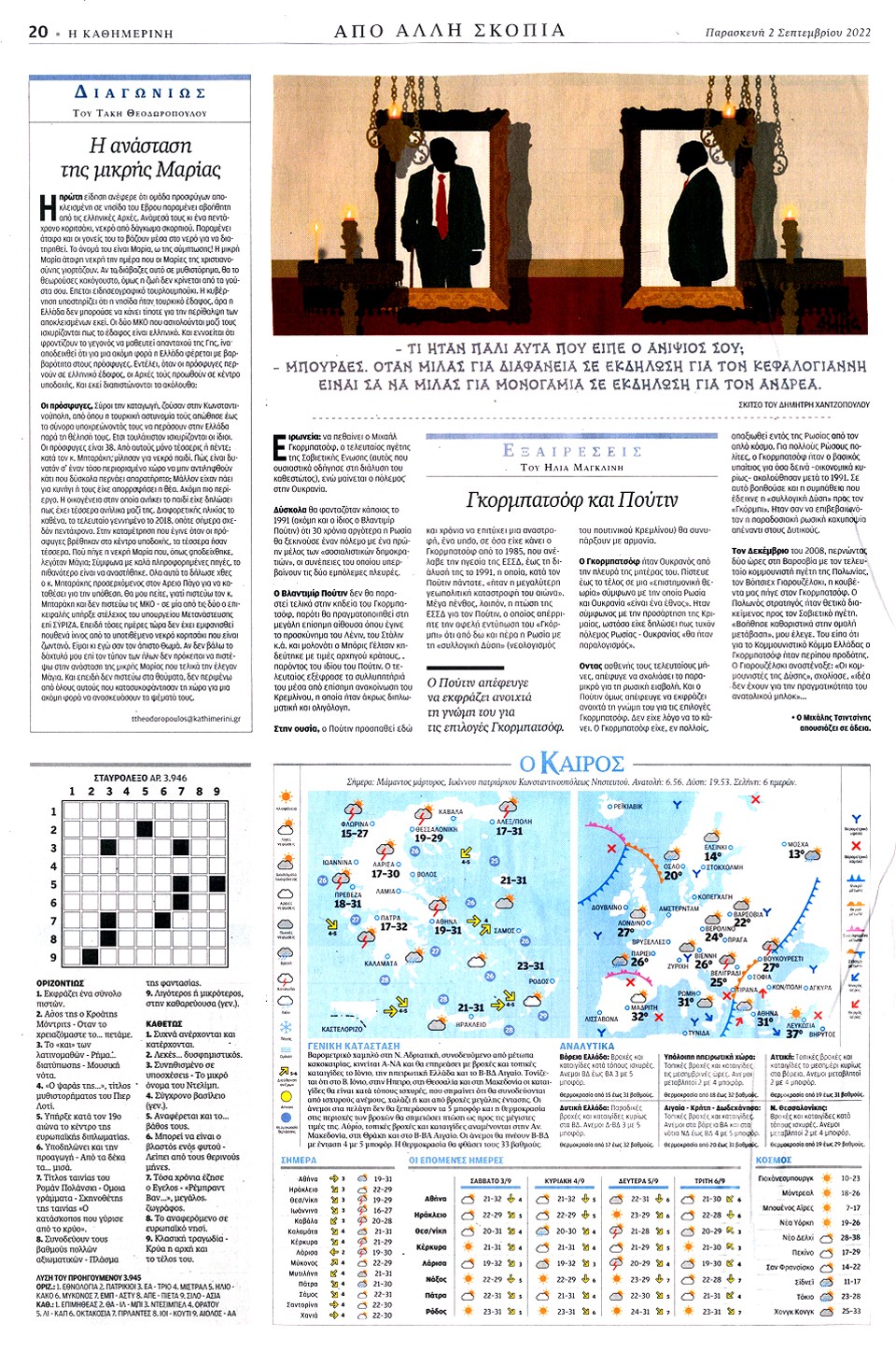 ΚΑΘΗΜΕΡΙΝΗ - 2 Σεπτεμβρίου 2022