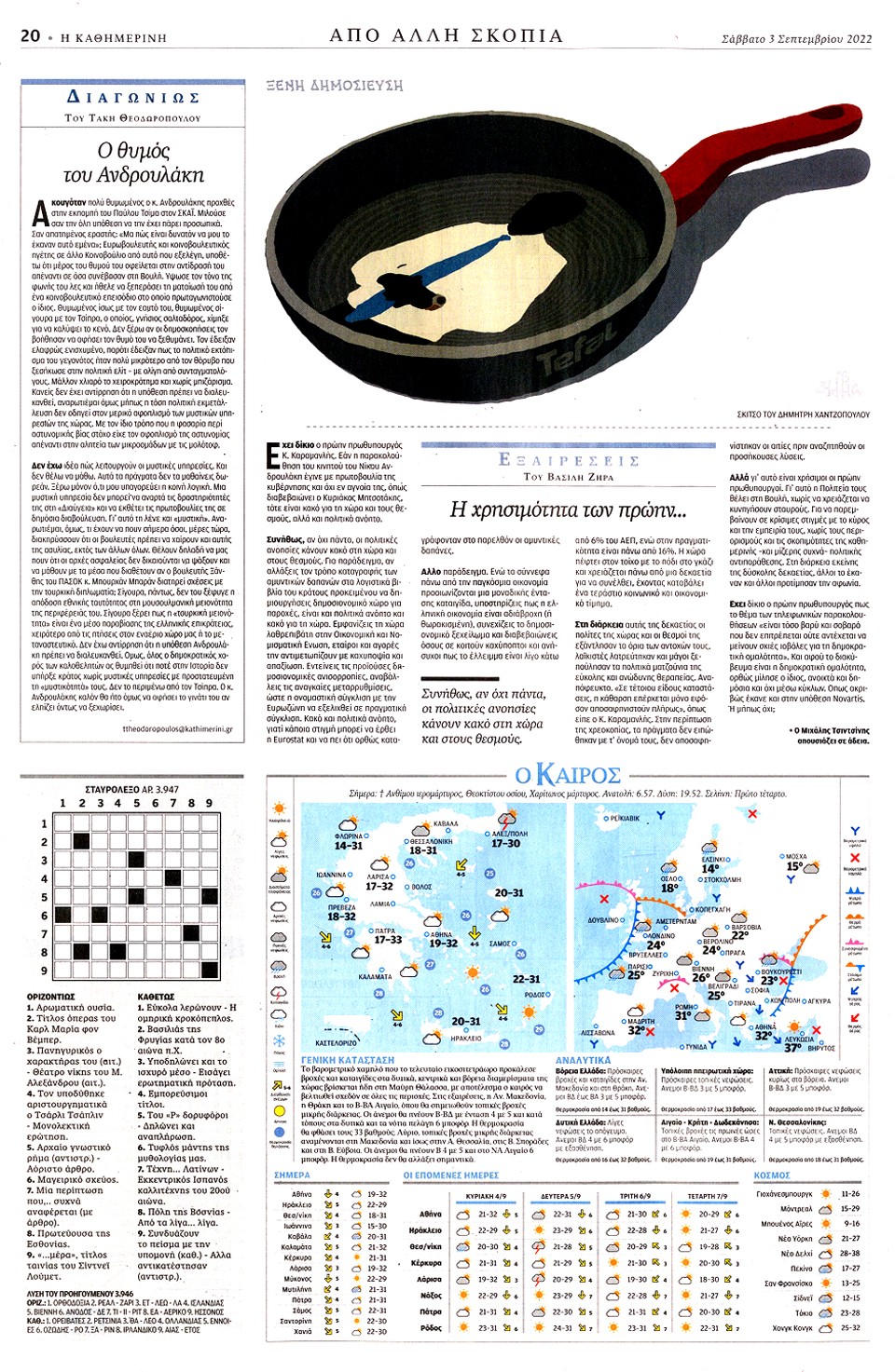 ΚΑΘΗΜΕΡΙΝΗ - 3 Σεπτεμβρίου 2022
